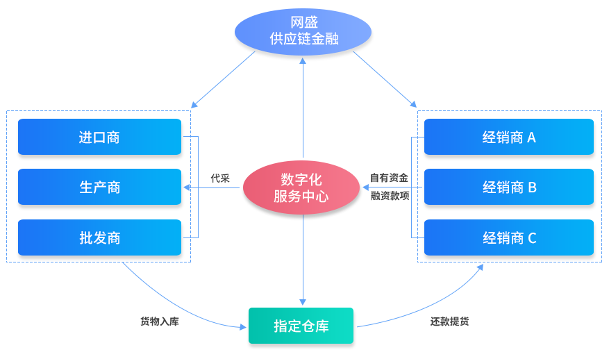 對供應鏈單個企業(yè)或上下游多個企業(yè)提供全面交易、金融等服務。 網(wǎng)盛供應鏈金融是依托網(wǎng)盛數(shù)字化交易平臺及供應鏈金融平臺,為